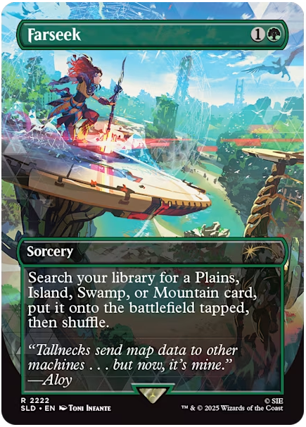 Nel 2022, i giocatori sono tornati nelle lussureggianti terre selvagge del post apocalisse nei panni di Aloy in Horizon Forbidden West. Tra frontiere mortali, Aloy ha affrontato nuove minacce dalle pericolose macchine che si aggirano nelle terre selvagge e dal passato dimenticato del Vecchio Mondo. Insieme ai suoi alleati ha combattuto per un futuro più luminoso, e ora combatte con te come parte del tuo mazzo di Magic: The Gathering.